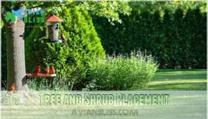 You’ll need to examine several key factors when positioning your bird feeders to maximize bird visits and guarantee their safety.