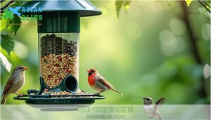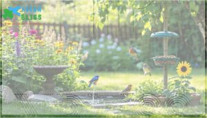 You’ll find that consistent feeding schedules, diverse food options, and proper feeder placement create a bird-friendly environment.