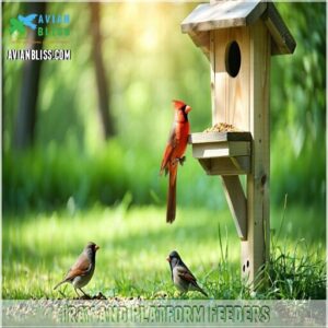 Their flat, open design offers easy access, making them a favorite among cardinals and jays too.