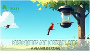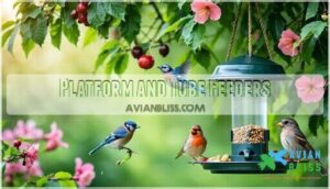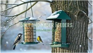 Specialized feeders cater to specific bird preferences you’ll want to accommodate.