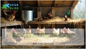 Factors like clean coops, proper lighting, and reduced stress help keep them productive and happy.