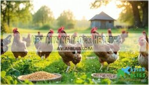 Look for signs of disease detection, like dull feathers or decreased movement, and check egg quality regularly.