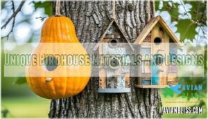 - You’ll want to choose cedar, redwood, or cypress for your birdhouse since these woods naturally resist decay and insects without needing toxic treatments that could harm nesting birds.