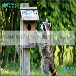 By mounting them securely and placing birdhouses in the right spots, you’ll give your feathered friends a fighting chance against sneaky predators.