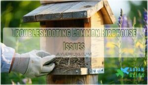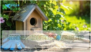Regular cleaning access isn’t just convenient—it’s essential for bird health and survival. By removing old nesting material and disinfecting with natural cleaning methods like diluted vinegar, you’ll dramatically reduce mites, ticks, and harmful bacteria.