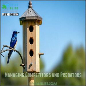 Install predator guards and manage invasive species like sparrows to promote harmony among your feathered guests.