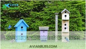 You can make your birdhouses more effective by providing nesting materials, placing them in species-preferred zones, and ensuring proper maintenance.