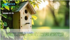 Airflow prevents overheating, while birdhouse drainage reduces mold in rainy weather.
