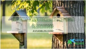 Consider ideal height and placement, avoiding traditional round-hole houses.