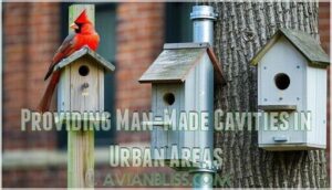 These support city cardinals, providing artificial habitats amidst human impact, ideal for a cardinal birdhouse and Northern cardinals in your backyard.