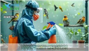 Smart bird owners know that proper hygiene practices include vaccination schedules, biosecurity measures, stress reduction, and daily health monitoring to prevent the deadly mistakes that claim thousands of birds each year, which is a key aspect of biosecurity measures.