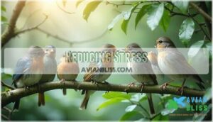 Social interaction helps, but don’t overwhelm them—bird stress management requires finding the right balance.