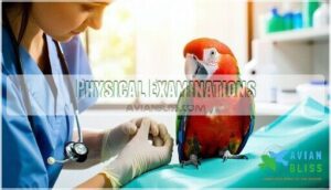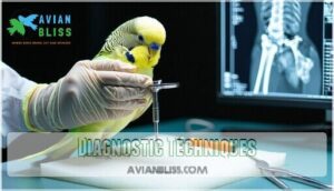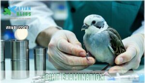 Your avian vet will use radiography interpretation to spot fractures that aren’t visible externally. Palpation accuracy helps identify pain points, while joint assessment reveals mobility issues.