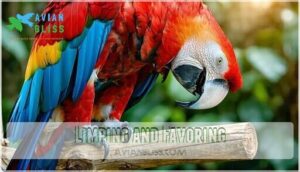 When your feathered friend starts limping or consistently favoring one leg, you’re witnessing clear pain indicators that shouldn’t be ignored.