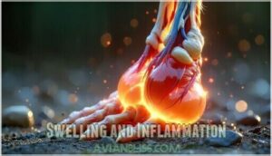 When your bird’s leg looks puffed up like a little balloon, you’re seeing inflammation markers at work – nature’s alarm system signaling injury or infection.
