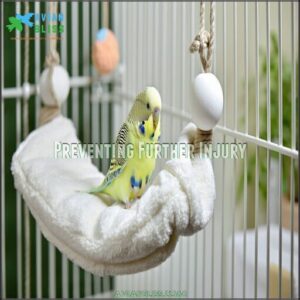 After creating a safe environment, focus on preventing further bird leg injuries.