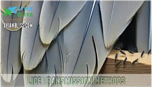 Lice primarily transfer through direct bird-to-bird contact, contaminated cage surfaces, and even through your own hands if you handle infected birds without proper precautions.
