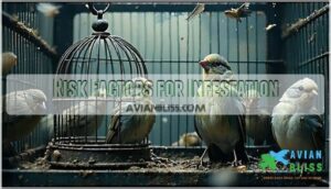 These tiny vampires pose serious health consequences through blood feeding, creating anemia risks in your birds.