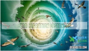 You’ll be amazed at how far some bird species travel, covering jaw-dropping distances that seem almost impossible.
