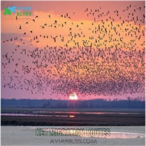You’ll be amazed by how birds travel thousands of miles each year, using specific routes called flyways to guide them.