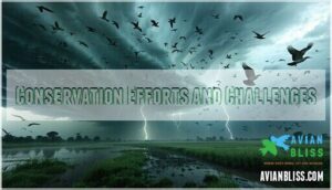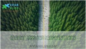 As urban sprawl and agricultural expansion accelerate, you’ll find critical stopover sites vanishing. Deforestation effects ripple through ecosystems, creating isolated habitat islands where birds struggle to find sufficient food and shelter.