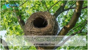 The ball design isn’t just for show—it provides superior nest insulation against harsh weather while keeping eggs and nestlings safely tucked away in natural defense systems.