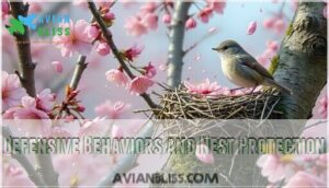 These defensive behaviors aren’t just instinct—they’re critical strategies to keep eggs and chicks safe from predators, which is a key aspect of their defensive behaviors.