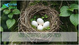 You’ll find that birds create nests to provide a secure sanctuary where they can protect their eggs and young from predators while regulating temperature.