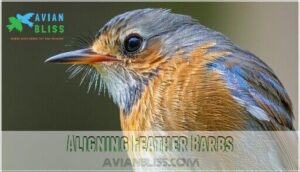 You’ll witness birds using their beaks like tiny zippers, connecting separated barb hooklets back together. This zipping mechanism restores feather structure by rejoining microscopic hooks that maintain flight efficiency.