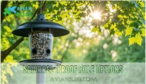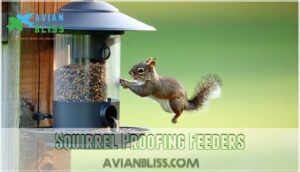 The good news is that modern squirrel-proof feeders use clever weight-activated mechanisms, sturdy metal cages, and strategic placement techniques that’ll outsmart even the most determined acrobatic rodents.
