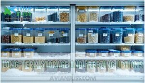 You’ll save money, reduce waste, and guarantee consistent bird activity in your yard. Remember: airtight containers, cool temperatures, and regular rotation are your best defense against spoilage.