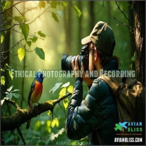 Selecting the right gear, such as specialized camera bodies, can improve your shots. Ethical photography enhances birdwatching photography, guaranteeing memories are captured without compromising wildlife safety and supporting responsible recordings.