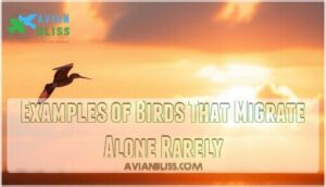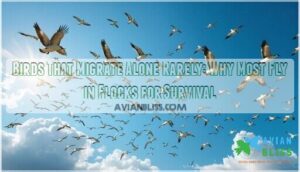 You’ll find that solo migration occurs rarely in the bird world, with most species choosing the safety and efficiency of group travel instead.
