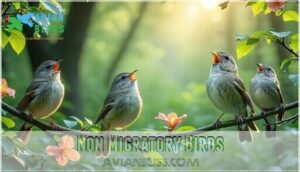 You’ll find that non-migratory birds have developed remarkable strategies to survive year-round in their home territories without making long journeys.