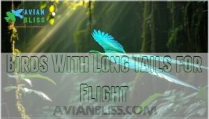 - You’ll discover that long tail feathers aren’t just decorative – they’re sophisticated survival tools that help birds navigate, communicate, and attract mates with incredible precision.