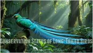 Conservation efforts are critical for protecting these magnificent creatures, whose intricate tail feathers guarantee their survival but also represent nature’s stunning evolutionary artistry.