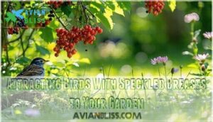 You can transform your garden into a haven for speckled-breasted birds like brown thrashers, song thrushes, and juvenile robins by providing the right mix of food sources and shelter.