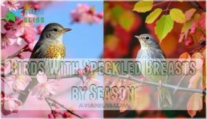 You’ll notice different speckled-breasted birds throughout the year as migration patterns and breeding cycles change their appearance and location.
