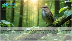 These thrush species prefer forest interiors where their haunting Hermit Thrush song echoes through trees.
