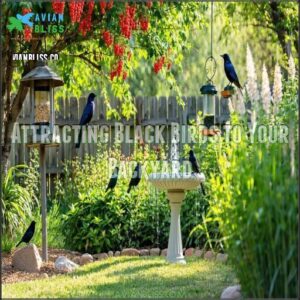 - Attract black birds to your yard with native plants, fresh water, and foods like sunflower seeds, fruits, and suet, especially in winter.