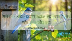 You’ll spot fifteen blue bird species across Pennsylvania, including Eastern Bluebirds, Blue Jays, and Indigo Buntings.