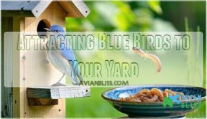 You can successfully attract species like Eastern Bluebirds and Blue Jays by providing live mealworms, fresh water sources, and properly positioned nest boxes with entrance holes measuring 1.5 inches in diameter, which is crucial for attracting species and creating a suitable environment with live mealworms.