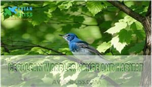 Uncommon species like the Cerulean Warbler add excitement to birdwatching adventures.