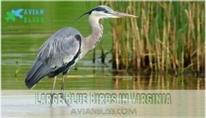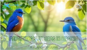 When you’re trying to identify blue birds in Virginia, you’ll need to pay attention to specific features like size, wing patterns, and breast coloration, since these birds range from the tiny Indigo Bunting to the large Great Blue Heron.