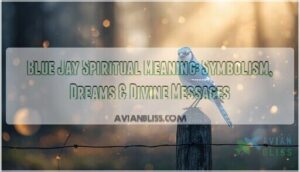 The blue jay’s spiritual symbolism runs deep! You’ll find this bird represents confidence, independence, and assertive communication—bold traits that mirror your own inner strength.