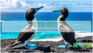 You’ll witness striking mating displays when boobies advertise their readiness to breed. Blue-footed males lift their vibrant feet alternately up to 20 times per display sequence, allowing females to assess male health via foot hue brightness.