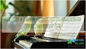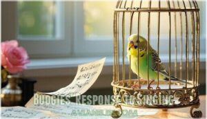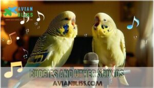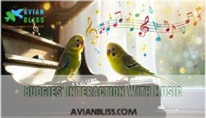 • You’ll discover that budgies have genetic predispositions for musical appreciation, with their "bird brains" naturally wired to respond to melodic experiences and complex sound patterns.