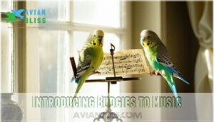 When introducing your feathered friend to music, start softly like you’re tiptoeing into a library. Your goal? Create a zen garden of sound that won’t ruffle their delicate feathers.
