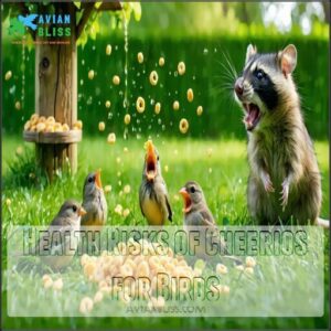 You’ll need to be aware of several key risks when feeding Cheerios to birds, including choking hazards from whole cereal pieces and digestive problems from processed ingredients.