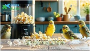 Plain air-popped popcorn offers the safest option for bird treats. Your air popper creates fluffy kernels without harmful oils or seasonings that damage bird health.